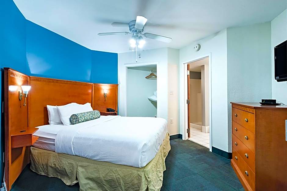 This suite features a seating area with sofa bed, full kitchen, and cable TV,